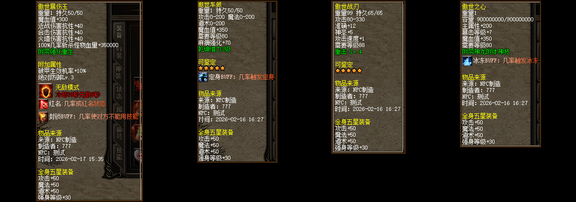 极品为主最高+10,+7 +8 +9 +10 叠加攻倍,魔血值,庄园可加极品!